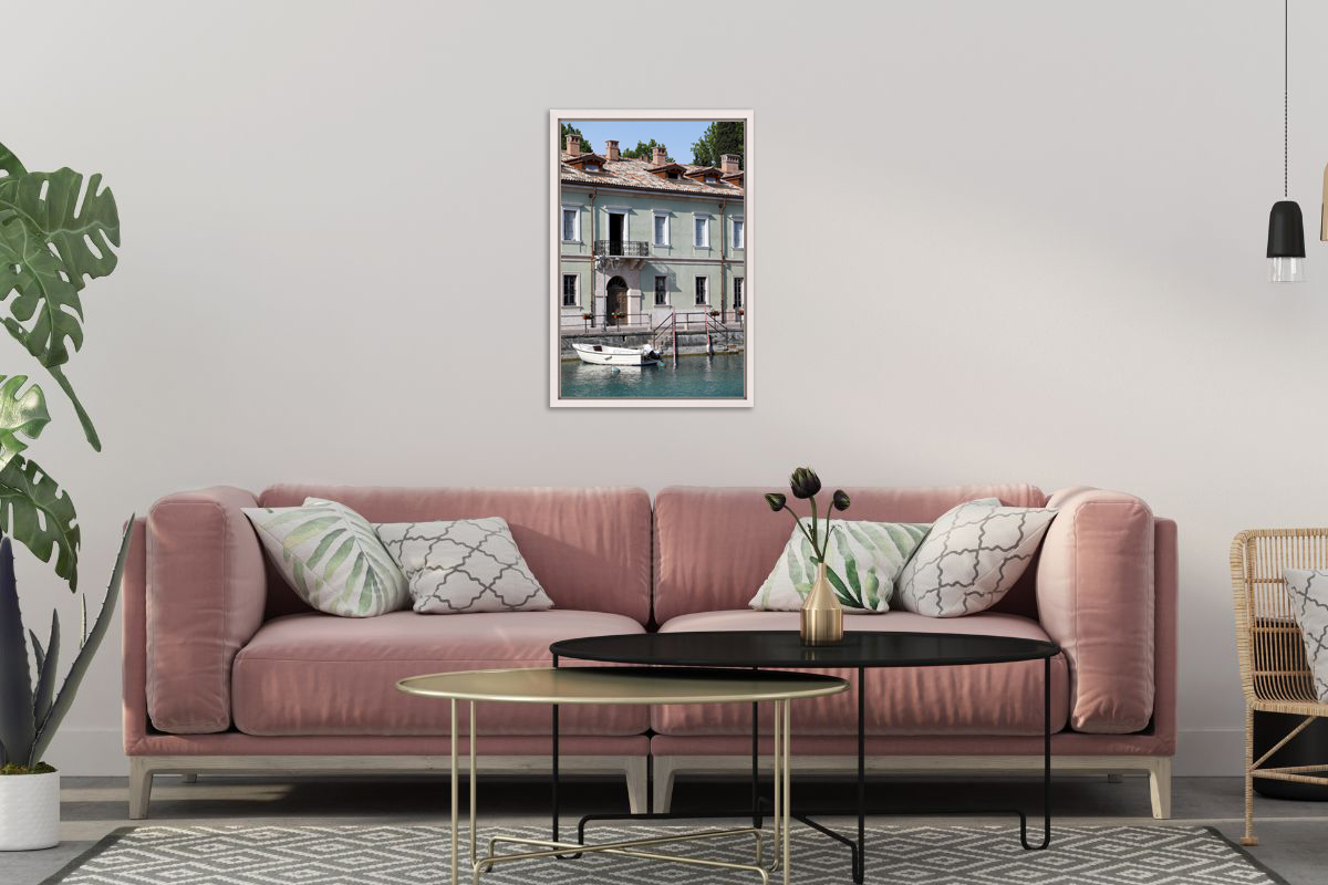 This beautiful scenery was captured by Photographer and Digital Artist, Scott Allen Wilson, in Peschiera del Garda. The picturesque green houses reflecting on the water and the small boat parked in front of them, make the perfect composition of an Italian Dream. A relaxing and enchanting view that could add plenty of beauty to a space. The print has been realized on glossy Fuji Crystal Archive paper and mounted beneath acrylic glass. The mounted print is surrounded by a beautiful white solid wood floater frame. All the elements in this composition were carefully picked to create the perfect print that transports you to beautiful Italy.