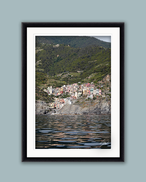 The vibrant colors of the buildings, the shimmering ligurian sea and the green radiant flora make a picture perfect portrait of the city of Manarola in Cinque Terre, Italy. Experience the magic of Cinque Terre in this stunning artwork, by Photographer Scott Allen Wilson. Perfect for adorning your living space with beauty. The print has been realized on Hahnemühle FineArt Pearl paper, and has been mounted with a natural white passe-partout. The mounted print is displayed underneath a matte float glass, and surrounded by a beautiful ebony solid wood frame. Every element of this piece was individually selected with intention as being a part of a unified piece of art.