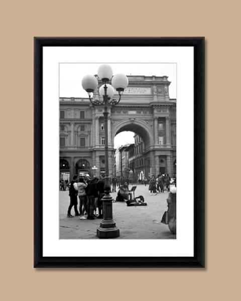 Framed by a streetlight in the foreground, I captured the arches and columns of Piazza della Repubblica in black and white. The entrance arch gathers the movement and energy of Florence’s main square. I could feel the live music, passing crowds, and the sense of people moving, and I still feel it in this picture. A single, quietly rhythmical moment.