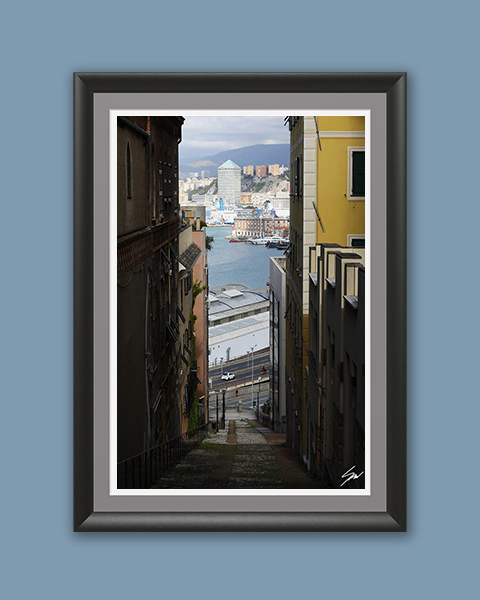 Exploring this narrow cobblestone pathway leads you down to the port. In the distance, the hills roll away, opening the scene to touch the sky and the horizon. The exact pinpoint where city and nature merge.