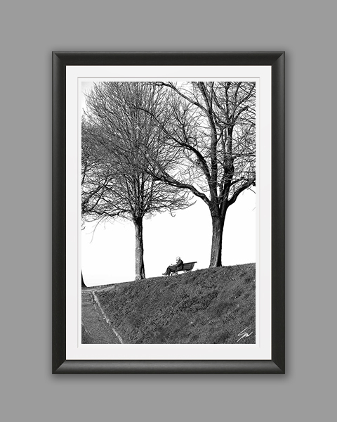 In Lucca, Italy, an old man reads alone, sitting on a bench between two trees. We become witnesses of a beautiful moment where a connection with nature is forged, and the ordinary becomes a source of pure joy. This framed print is a reminder that life’s most precious moments often reside in the simplicity of our everyday experiences. The print has been realized on Hahnemühle FineArt Pearl paper, and has been mounted with a bright white passe-partout. The mounted print is displayed underneath a matte float glass, and surrounded by a beautiful ebony solid wood frame. Every element of this piece was individually selected with intention as being a part of a unified piece of art.