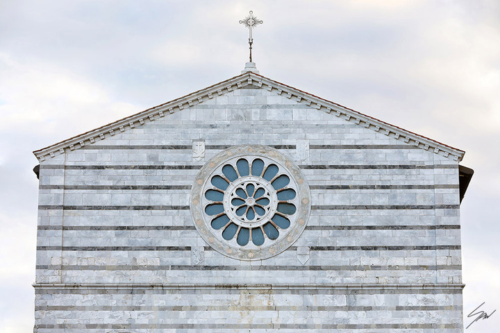 The stone façade of the San Francesco Church in Lucca, Italy, adorned with a perfectly symmetrical rose window that mirrors the serene sky’s hue. This framed print exudes grace and is sure to light up your spaces with its bright colors. The print has been realized on glossy Fuji Crystal Archive paper and mounted beneath acrylic glass. The mounted print is surrounded by a beautiful white natural oak floater frame. All the elements in this composition were carefully picked to create the perfect print that transports you to Lucca.
