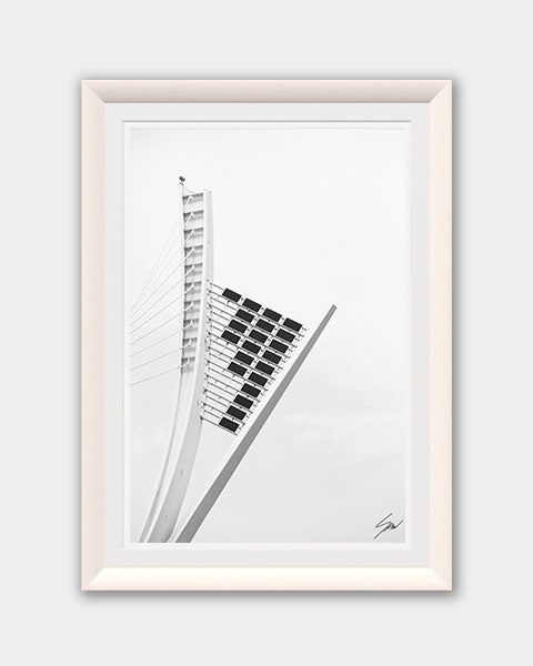 Elevate your space with this abstract print of a unique detail of the Ponte Ennio Flaiano in Pescara, Italy. This print offers an unusual perspective on the bridge, transforming it into a striking piece of decor that effortlessly blends modern aesthetics with the city’s heritage. A cool and sophisticated addition to your home. The print has been realized on Hahnemühle FineArt Pearl paper, and has been mounted with a bright white passe-partout. The mounted print is displayed underneath a matte float glass, and surrounded by a beautiful white solid wood frame. All the elements in this composition were carefully picked to create the perfect print that transports you to Pescara.