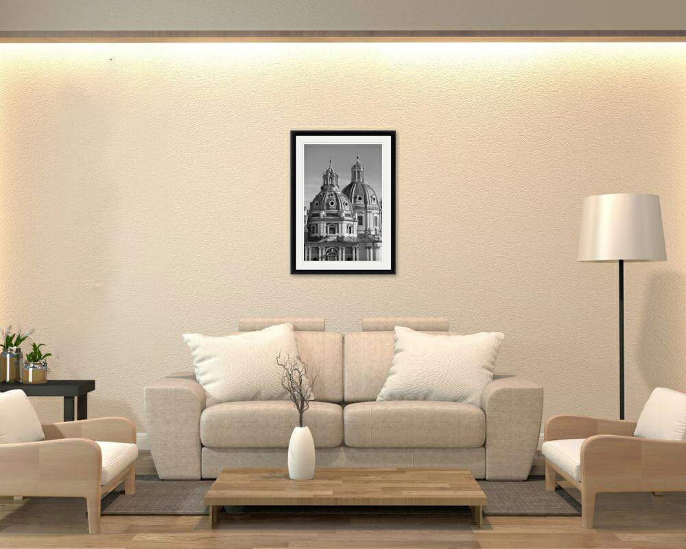 This artistic photograph was captured in Rome, Italy by Photographer and Digital Artist, Scott Allen Wilson. The print has been realized on Hahnemühle FineArt Pearl paper, and has been mounted with a bright white passe-partout. The mounted print is displayed underneath a matte float glass, and surrounded by a beautiful ebony solid wood frame. Every element of this piece was individually selected with intention as being a part of a unified piece of art.
