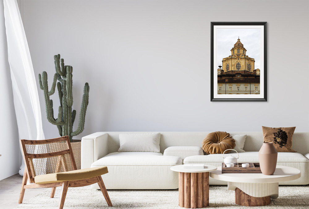 The Royal Church of San Lorenzo has a regal allure that recalls the magnificence of past times in Torino, Italy. Get lost in the heavenly details of this shot created by Photographer Scott Allen Wilson. The print has been realized on Hahnemühle FineArt Pearl paper, and has been mounted with a natural white passe-partout. The mounted print is displayed underneath a matte float glass, and surrounded by a beautiful ebony solid wood frame. Every element of this piece was individually selected with intention as being a part of a unified piece of art.