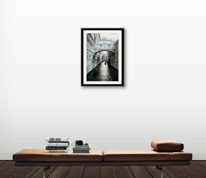 The legend says that if you kiss someone under the Bridge of Sighs you will enjoy eternal love. Nobody questions the name of this bridge, as a sigh is my first reaction to a bridge full of tradition and energy. Captured by Photographer and Digital Artist, Scott Allen Wilson, The Bridge of Sighs is one of the most recognized structures of Venice, Italy. Formed by a white arch full of detail, the renaissance architecture is once more appreciated in the heart of the city. Unlike the colors that usually dress Venice, this print shows a predominance in white, contrasting the dark Rio di Palazzo, guiding our eyes through the deep waterway. The Bridge of Sighs is the ideal photograph to brighten any space while giving it a classic and elegant touch. This piece has been realized on Hahnemühle FineArt Pearl paper, and mounted with a natural white passe-partout. It is displayed underneath a matte float glass, and surrounded by a beautiful ebony solid wood frame. All the beauty and romance that Venice is famous for, is encapsulated in only one print that can make me fall in love at first sight!