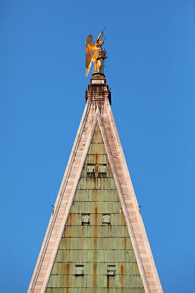 Did you know that the bell tower in Venice has collapsed, burned down, or has been severely damaged on nearly 10 occasions since it’s original construction in the 9th century? It wasn’t until it caught fire from repeated lightning strikes (something like 7 different times) that they finally installed a lighting rod to the gilded statue of the Archangel Gabriel in 1776.