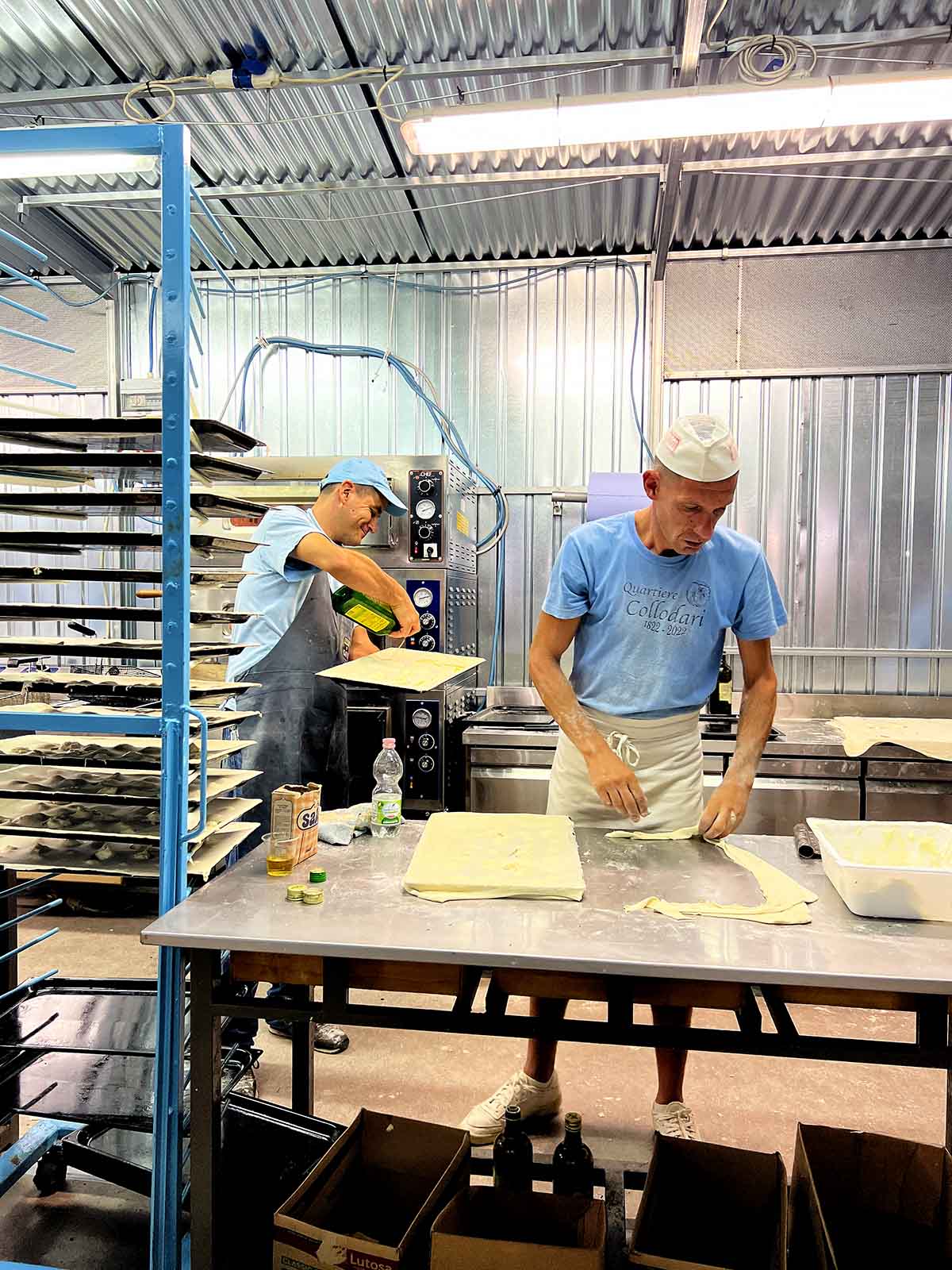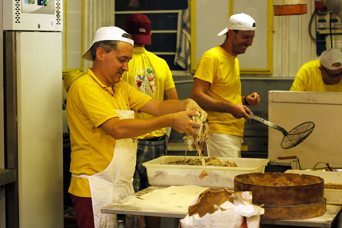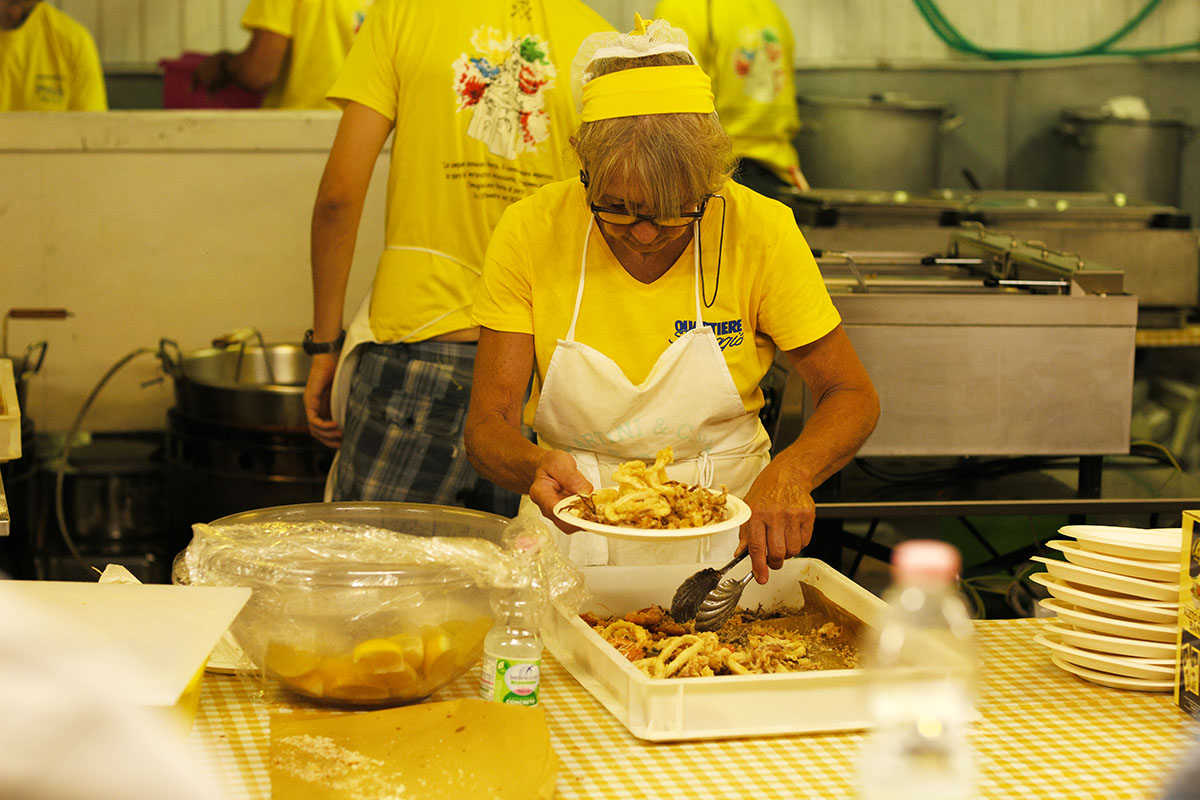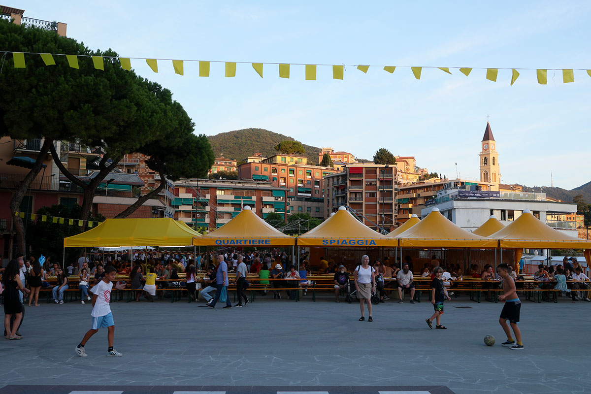 The ovens are on, and the smell of baking goods, focaccia di Recco, pansotti, and delicacies, drift through the streets. Recco turns into a kitchen without walls. At the benefit dinners to support the Sanctuary, the wine flows, music drifts, and laughter spills across the town.