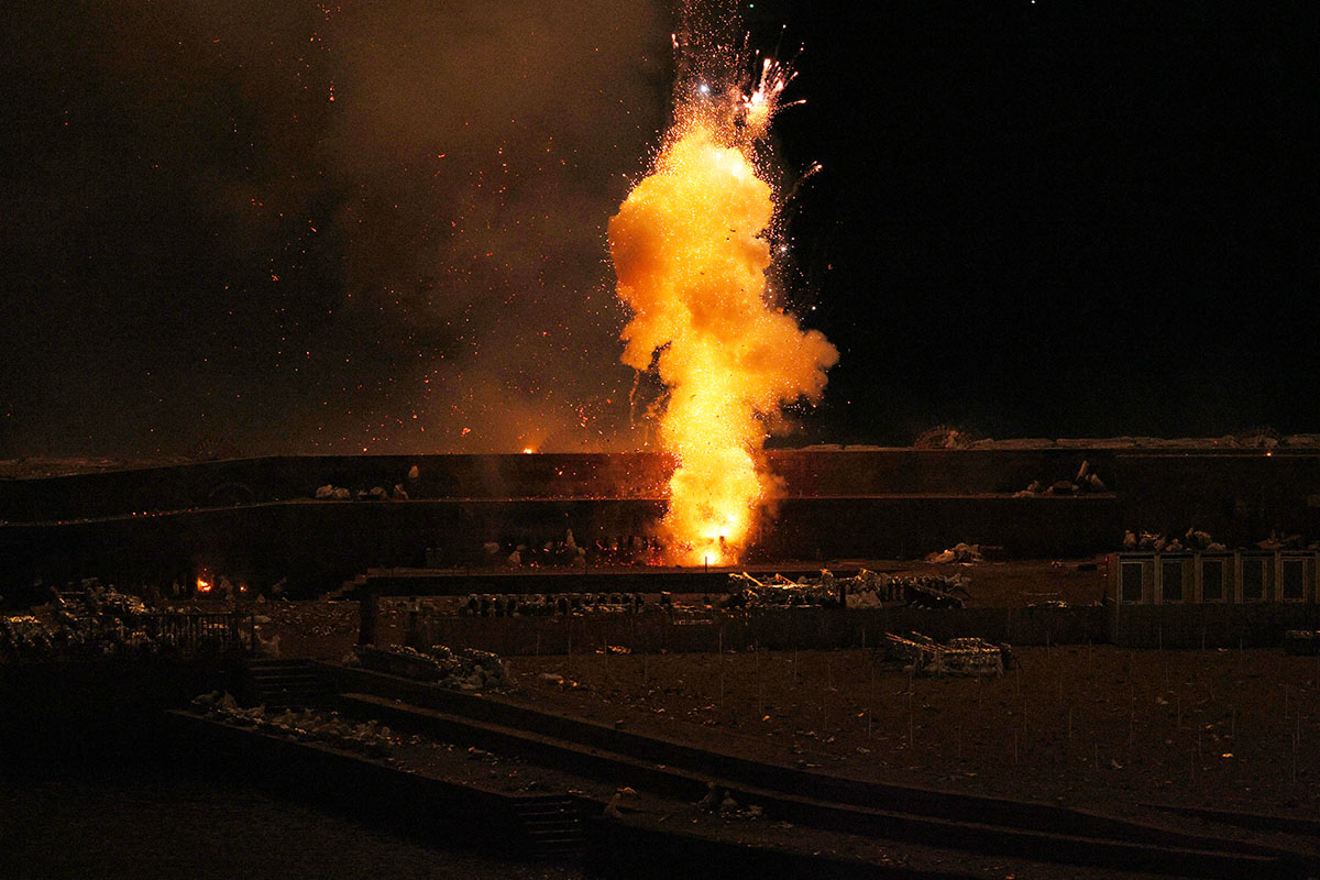 You can feel how much love and work the locals pour into it. It’s organized chaos, connecting fuses, filling canons, preparing bouquets of flowers that get launched into the air before completely exploding. It’s a lot to take in and totally amazing if you love that kind of sensory overload. For anyone else, it probably feels like being caught in the middle of a thunderstorm.