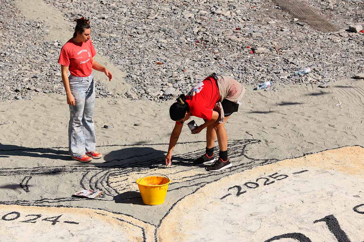 The festival moves to a rhythm that never really changes, only the weather dares to interrupt it. At dawn, the flags rise, the bells echo across the valley and 21 thunderous salutes roll through the hills. Each neighborhood answers with volleys of mascoli from the riverbed. It’s officially starting.